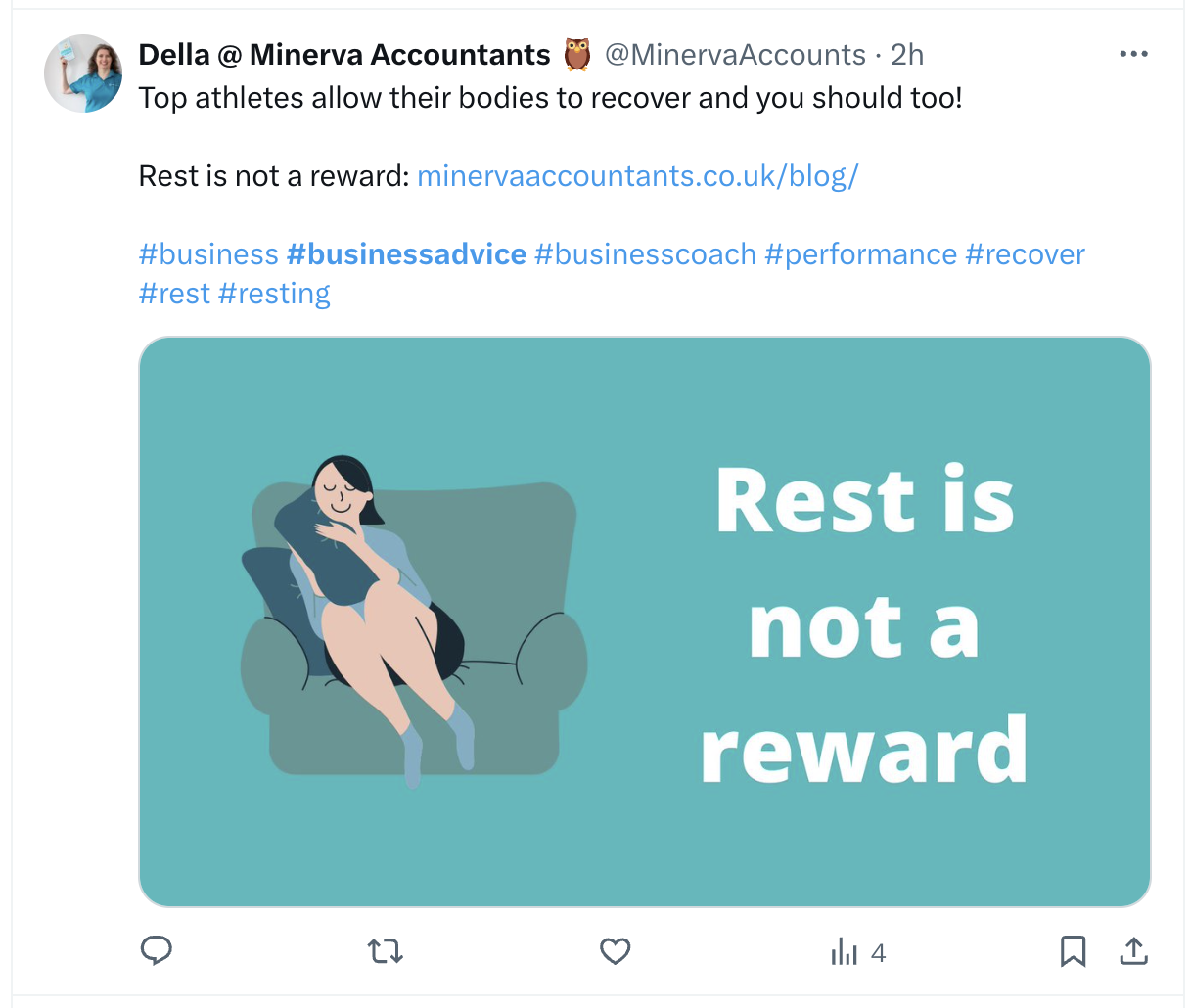 It’s great to remember that as a business owner, you need to take breaks. It’s easy to find yourself on the hamster wheel of never-ending tasks. Prioritize your own mental health, drink water, and take lots of breaks before getting back to the grind: